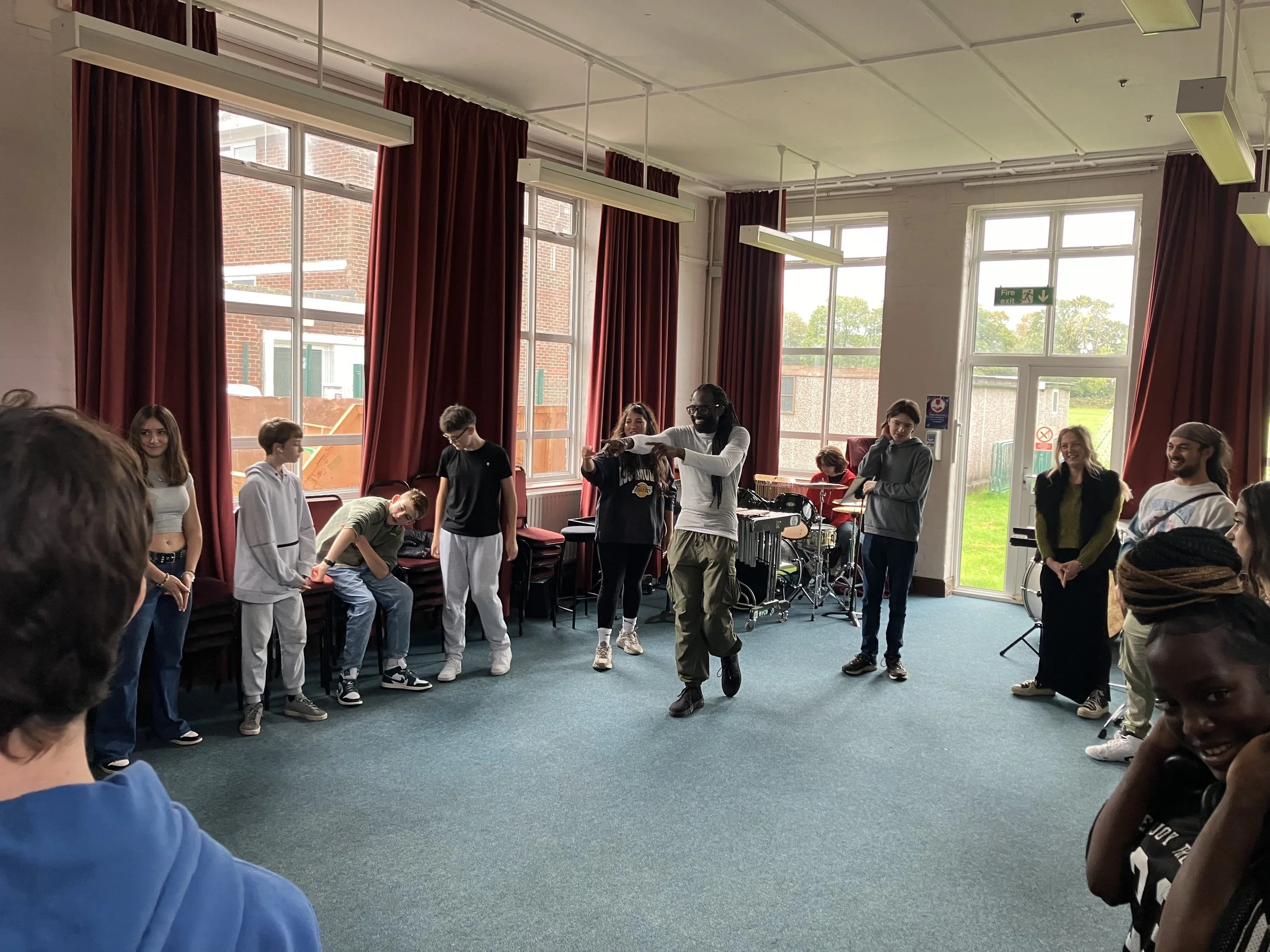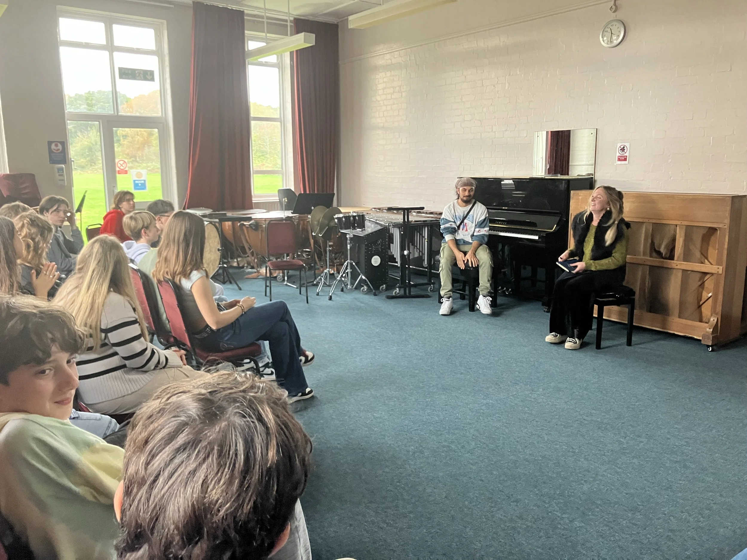 After our initial workshops, we invited in our guest artists GeeJay to spend some time with the group. They performed three songs and then spoke to small groups of our collective, listening and giving tips and advice on songwriting and performing.